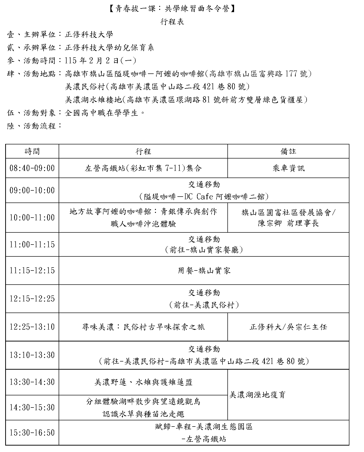 青春拔一課:共學練習曲冬令營 行程表