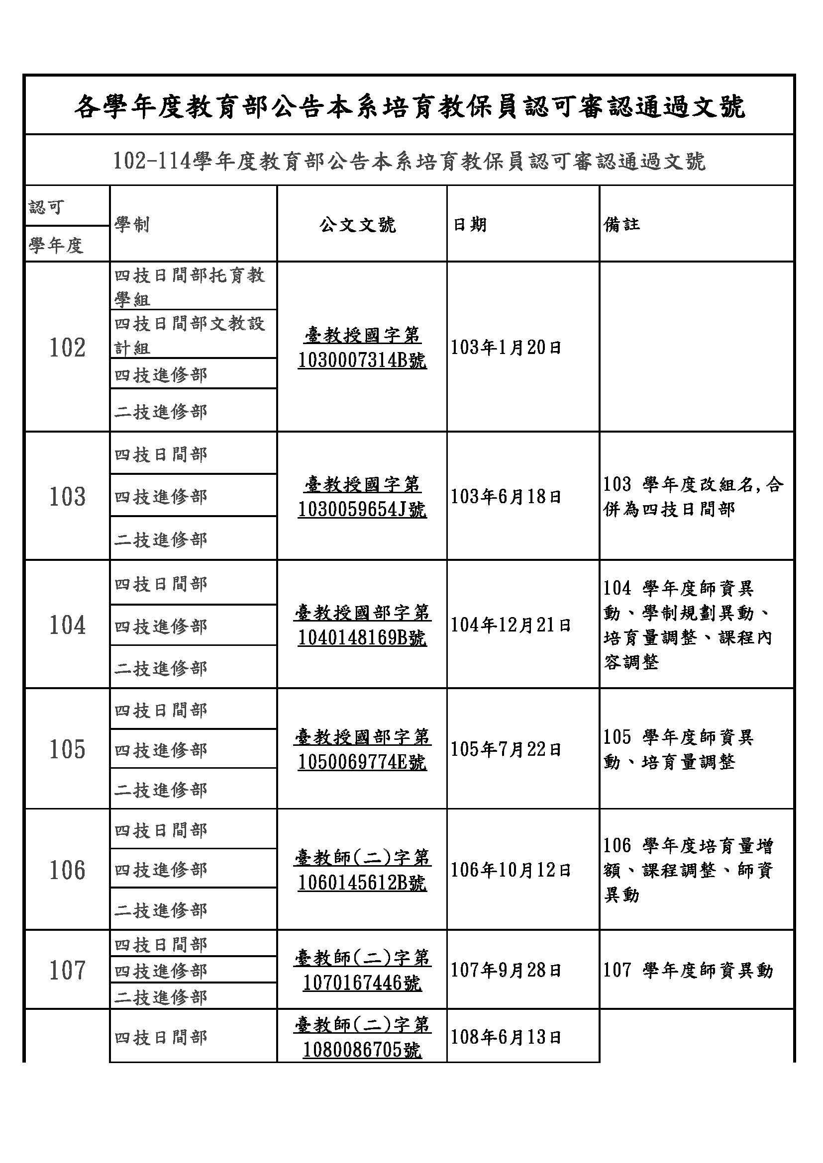 教育部公告本系培育教保員認可審認通過文號